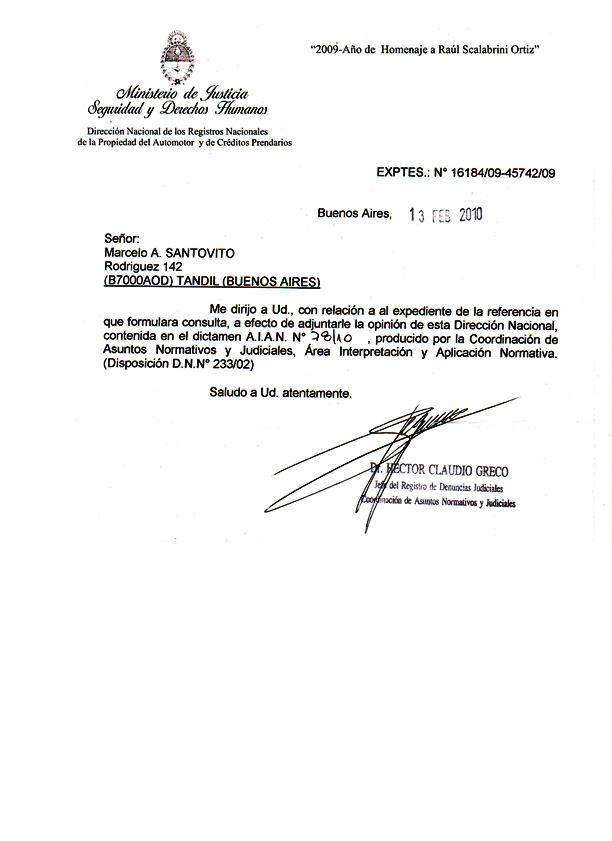 Dictamen A. I. A. N. 78/10