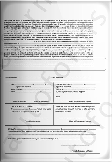A continuación damos a conocer la autorización de la D. N. R. P. A. y C .P. que nos permite la utilización e impresión de contratos de prenda sin identificar acreedor prendario alguno. El mencionado contrato (incluye copias no negociables y continuaciones) puede ser impreso, con el sistema Autoforms, junto con los datos correspondientes o bien ser impreso en blanco para completar mas tarde.
