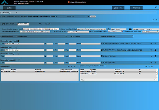 En este panel se ingresa el/los titular/es registral/es. Los mismos pueden ser PH o PJ. Soporta condominio y apoderados.