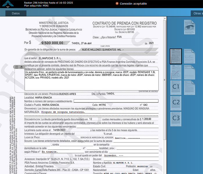 Esta manera que encontramos, tiene muchas ventajas. Una de ellas es que permite controlar el trámite en un solo lugar y ello aporta celeridad a la hora de concluir nuestro trabajo. Es por ello que por ejemplo un trámite como la INSCRIPCIÓN INICIAL CON INSCRIPCIÓN DE PRENDA CONDICIONADA, con Autoforms, se ha transformado en un trámite rápido y seguro.