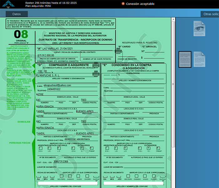 Este panel es de suma importancia para los concesionarios oficiales y/o comerciantes habitualistas. Si se consigna el lugar y fecha, Autoforms se encarga de la redacción de las correspondientes certifiaciones de firma.