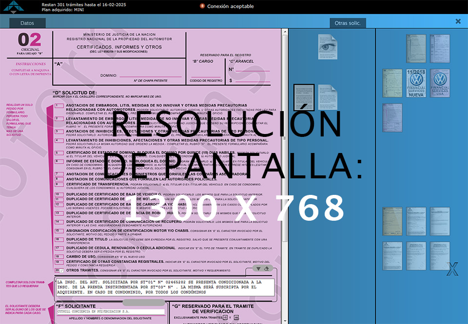 Las solicitudes tipo de uso obligatorio para la inscripción o anotación en los Registros Seccionales de la Propiedad del Automotor, NO se pueden imprimir, salvo las enumeradas a continuación: