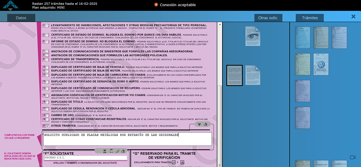 • Los datos aparecen sobre las S.T., formularios, notas, DD.JJ o contratos prendarios.